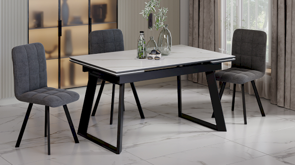 «Стоун» Тип 1 – современный обеденный стол с керамогранитом, который является отличным выбором для тех, кто ценит качество, стиль и удобство. Изюминка дизайна – замкнутые в трапецию металлические опоры, которые привлекают свое внимание оригинальным дизайном. Модель выглядит привлекательно и эстетично, добавляя обстановке максимальный уют и позволяя создать акцент в определенной части комнаты.