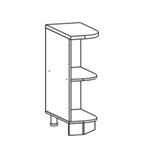 Глубина верхних шкафов указана без учета фасада, высота столов указана без учета столешницы