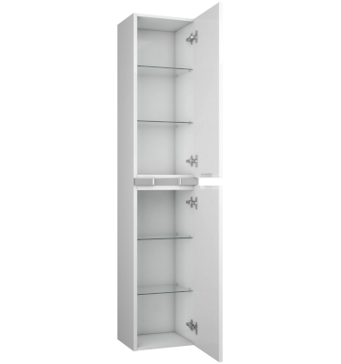 Корпус и фасады изделия изготовлены из влагостойких древесных материалов (МДФ 16мм и 19мм). Пять слоев эмали с лаком создают наибольшую защиту от влаги, гладкость и глянцевое покрытие остается на весь срок службы без изменений. Ручка для данного изделия сделана по спец.заказу, гармонирует с дизайном самого изделия, а так же очень удобна и проста в использовании. Внутренние полки выполнены из закаленного 5мм стекла. Пенал Allia универсальный имеет правое и левое открывание, все на усмотрение своего хозяина. Дверцы пенала оснащены усиленными петлями со встроенным доводчиком, что способствует бесшумному закрыванию. Навесы данного изделия выдерживают до 100кг.
