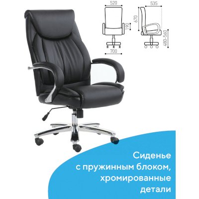 Плотная многослойная набивка, продуманная форма спинки, широкий подголовник, массивные подлокотники с мягкими накладками создают максимально комфортные условия для продуктивной работы.