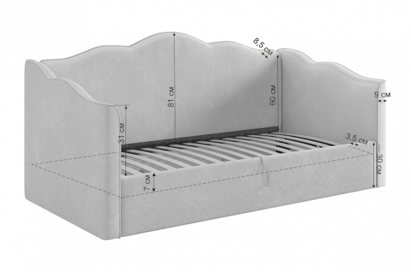 Размер кровати: ШхГхВ 2190х1034х1000 мм (спальное место 90х200 см)