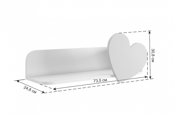 Размер полки Сердечко/Бабочка: ШхГхВ 735х248х308 мм