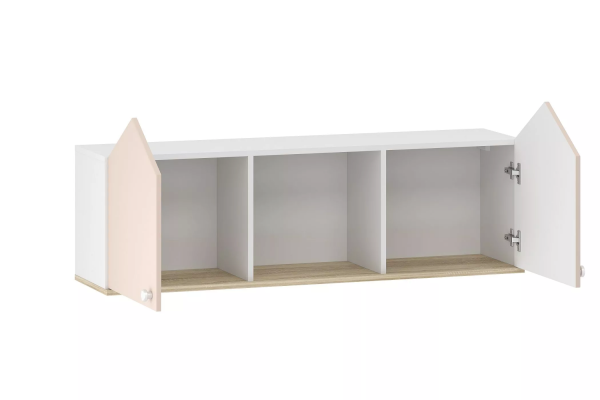 Полка Банни сделает рабочую зону в детской еще более функциональной. Модуль состоит из двух закрытых отделений и одной открытой ниши. В боковых отделениях предусмотрена полка для размещения книг. Открытая ниша подойдёт для размещения декора, фотографий или игрушек. Скругленные ручки на ящиках и дверцах делают мебель безопасной для детей. Оригинальный дизайн в виде домиков придаст интерьеру уникальность.
